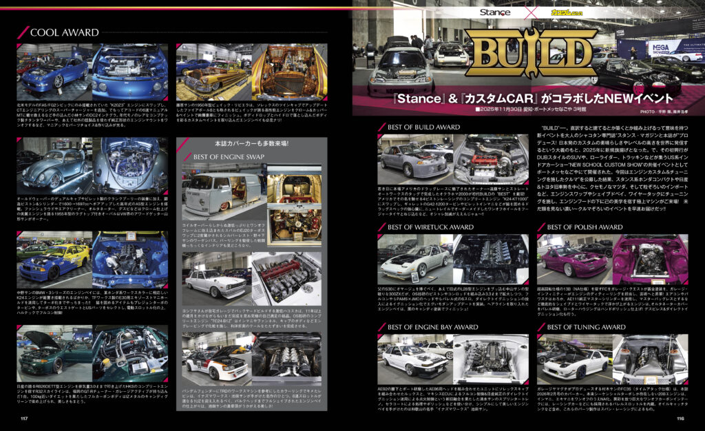 スタンスマガジン&カスタムCARの共同プロデュースで誕生した新イベント“BUILD”。第1回の開催となったポートメッセなごやに集った濃厚マシーンを紹介!