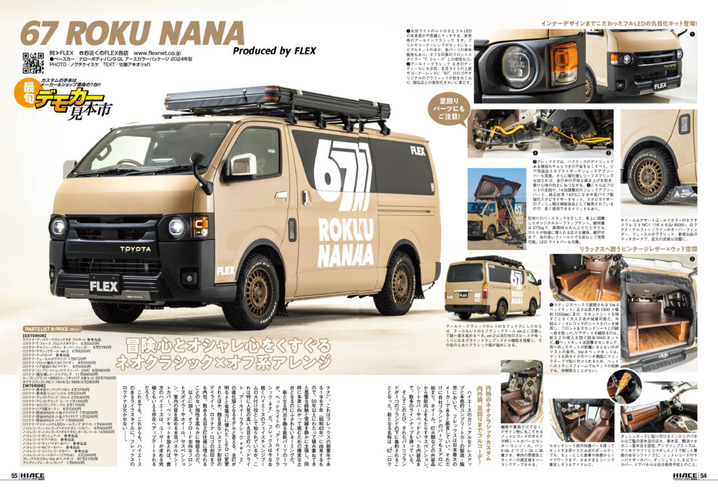 さらにハイエースとの生活を楽しむユーザー紹介から、アウトドアでのお役立ちパーツ紹介、そして有名ショップ&メーカーのデモカー&最新パーツ情報まで網羅!