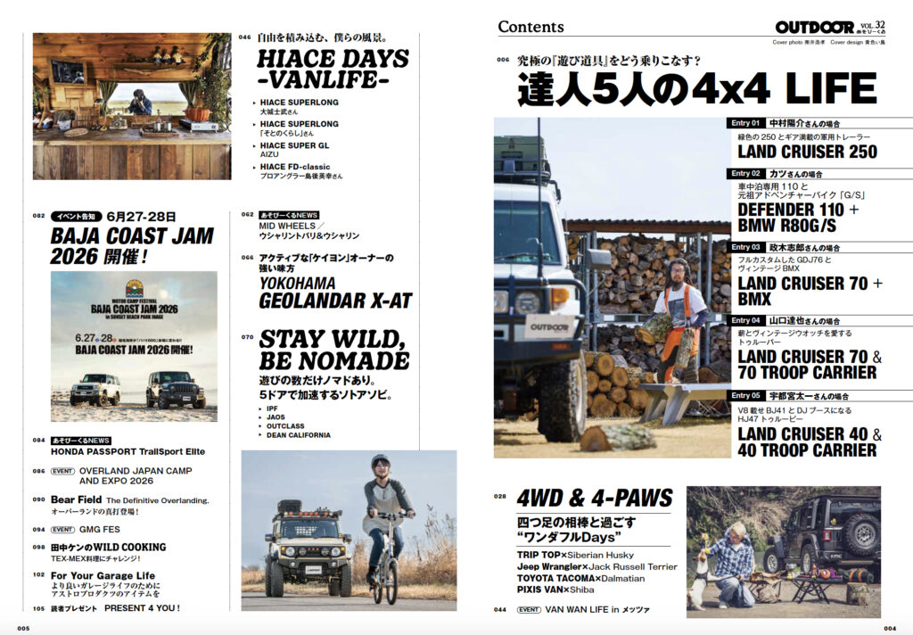 「OUTDOORあそびーくる」と姉妹誌であるジムニー専門誌「スーパースージー」の合同イベントを、来る6月27-28日に開催します。会場は千葉県の稲毛海浜公園「SUNSET BEACH PARK INAGE」。メインコンテンツとして「SCORE BAJA 1000」に参戦したTEAM JAOSのレース車両、LEXUS GX550 “OVERTRAIL” TEAM JAOS 2025 ver.を招致し、TEAM JAOSドライバーである、能戸知徳さんにデモランを披露していただきます。